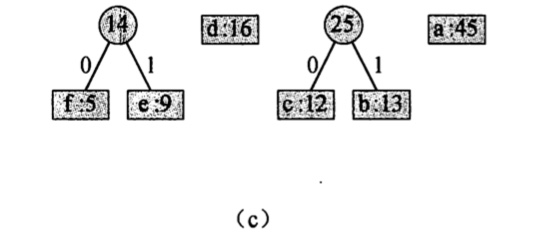 步骤:每次构造二叉树将频率低的两棵树进行合并