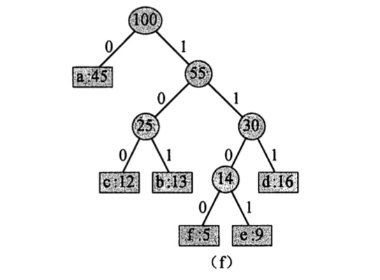 假定我们希望压缩一个10个字符的数据文件。下表给出了文件中所出现的字符和它们的出现频率。也就是说,文件中只出现了6个不同字符,其中字符a出现了45 000次。